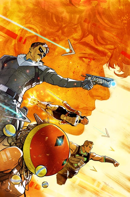 I have a couple other DC projects in the works. One is a 3-issue mini-series drawn by Dustin Nguyen that will be announced in a few weeks. It will launch in April. Here is a tease of that project…a detail from my own variant cover for #1…